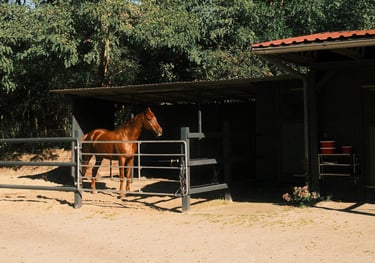 Unser Hof bietet alles für Pferd und Reiter – vier Ställe mit jeweils eigener Sattelkammer, eine moderne Offenstallhaltung, zwei Reithallen und Reitplätze, einen Longierbereich, Paddocks und fußläufig erreichbare Weiden an der Aller.